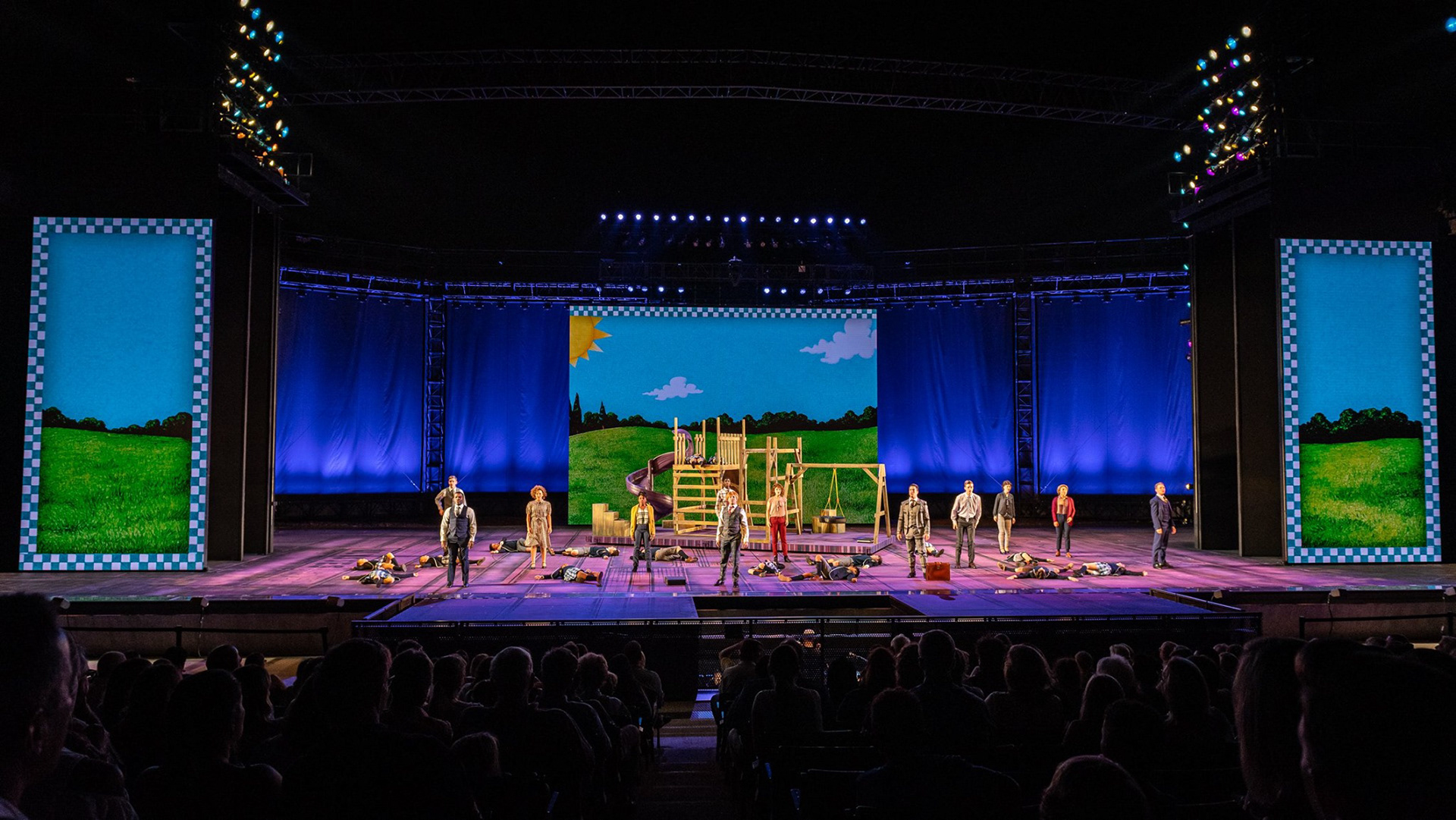 THE MUNY - July 2019 video design Directed/Choreographed by: John Tartaglia Choreographed by: Beth Crandall Scenic Design: Paige Hathaway Costume Design: Leon Dobkowski Lighting Design: Rob Denton